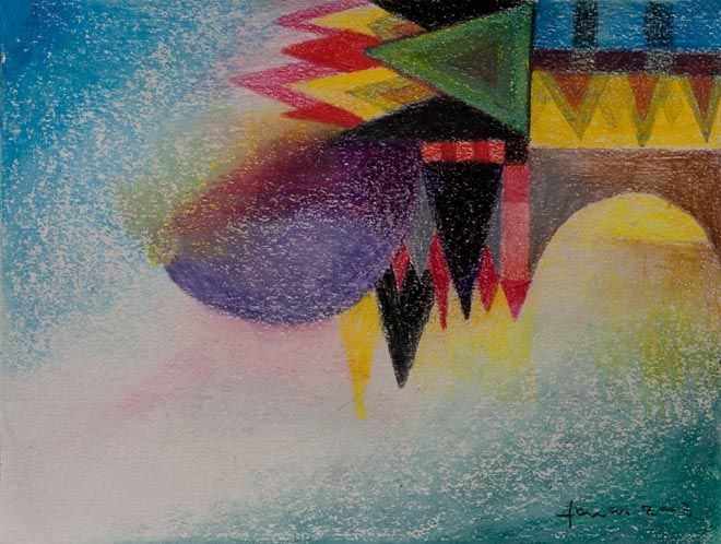 Abstracte kunst zijn dingen die niet bestaan en die niet kunnen. De tekening is hier een heel goed voorbeeld van. Want het is eigenlijk helemaal niks en toch ziet het er leuk uit. Er zijn ook allemaal verschillende velle kleuren gebruikt voor het knallende affect. Nu ga jij zelf ook zo'n abstrakte krijt tekening maken.